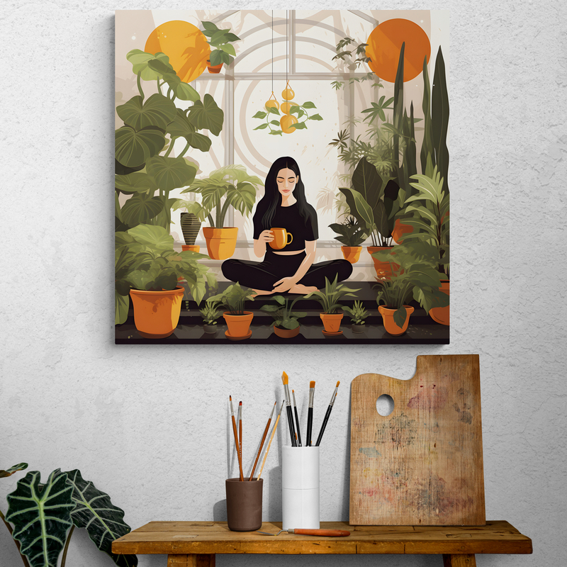 Woman in her Indoor Garden
